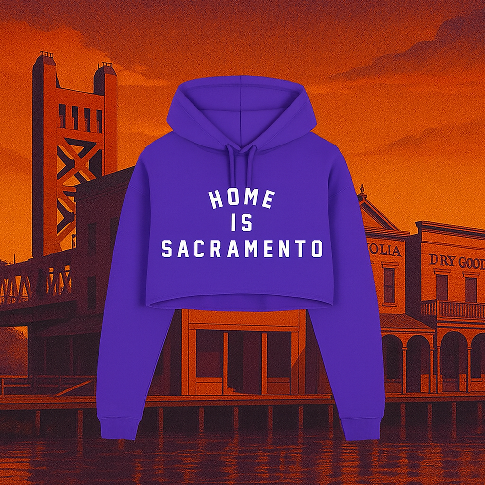 TPOS HOME IS SACRAMENTO CROPPED HOODIE (PURPLE)